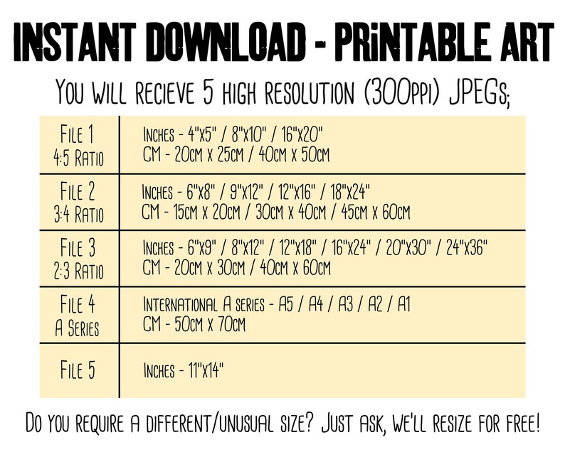 Size Chart For Prints Thurston Photo